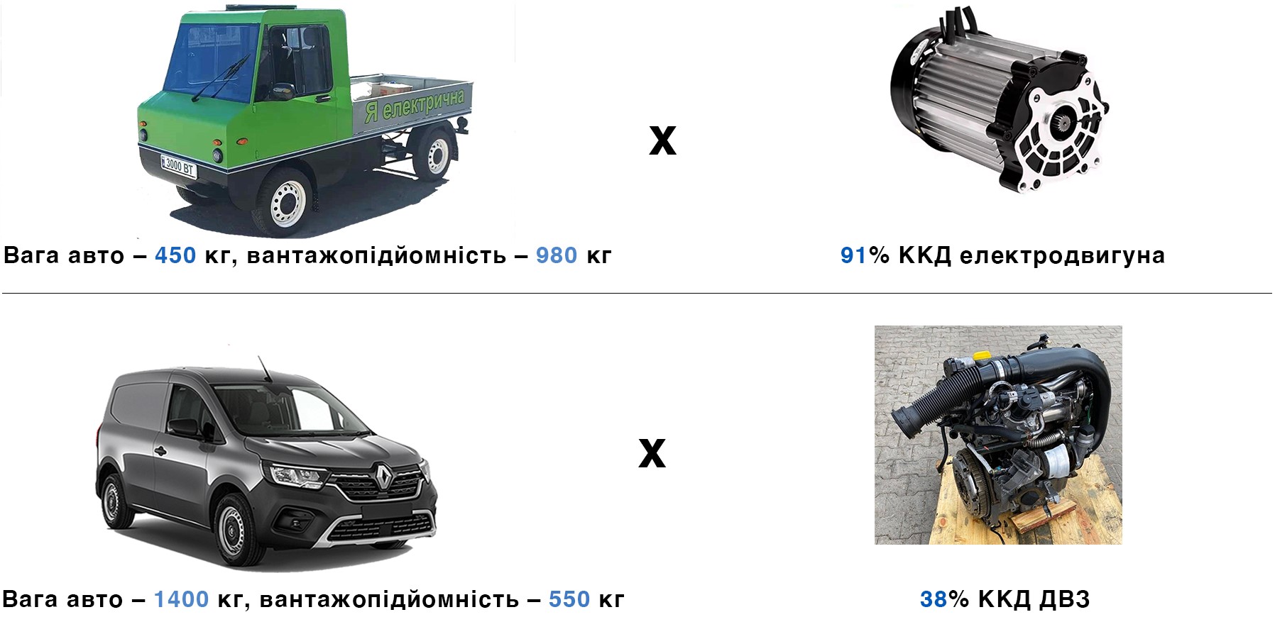 Поєднання її з ККД електродвигуна робить наші вантажівки в 5 разів енергоефективнішими в порівнянні з ДВЗ-авто.