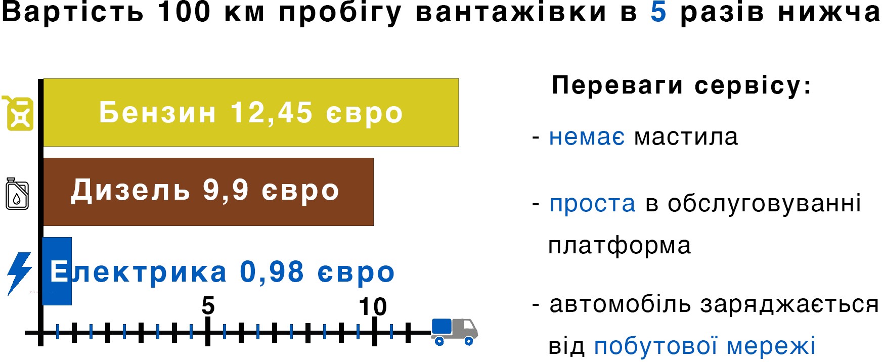 В результаті наші клієнти перевозять свій вантаж менше ніж за 5 євро на відстань 100 км.